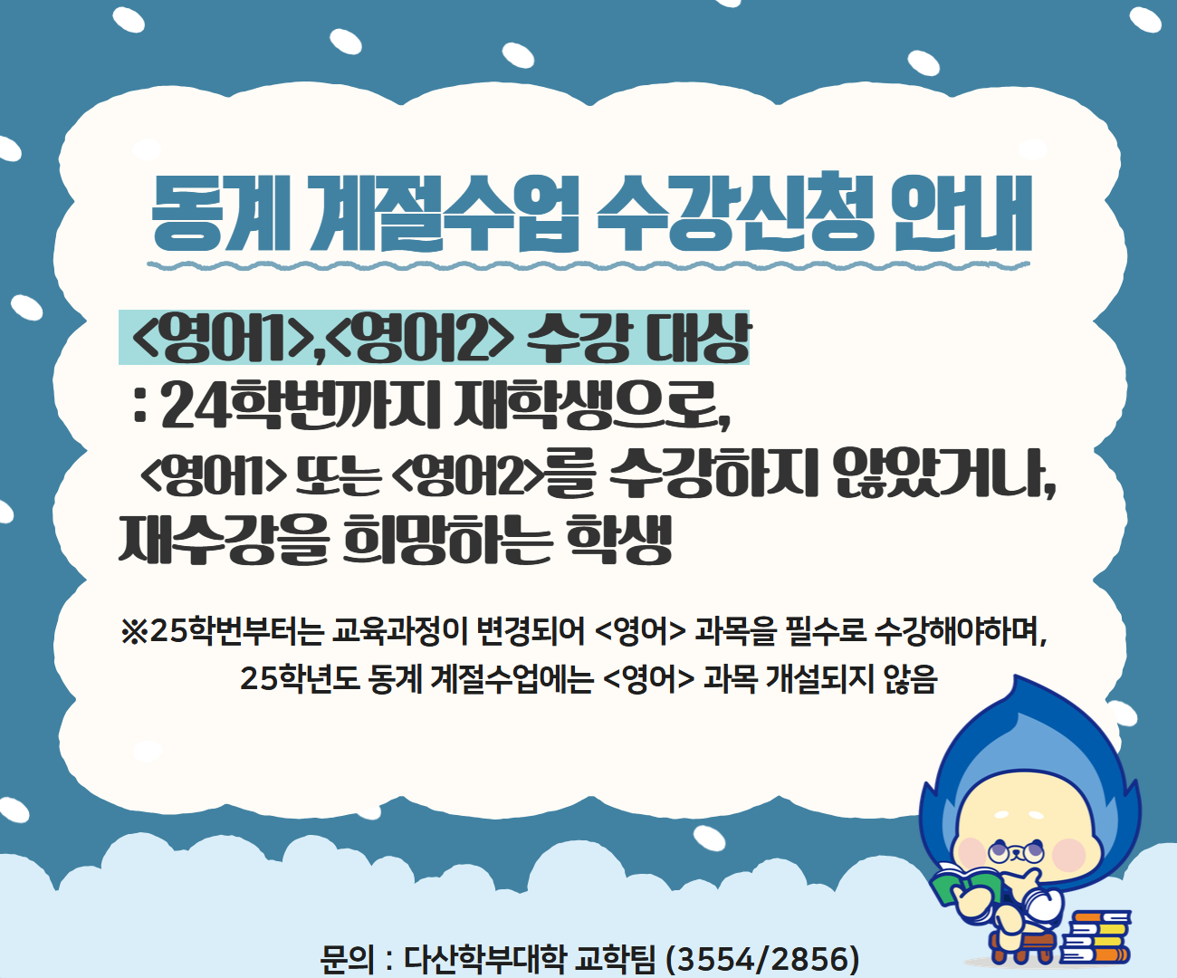 [학사] [다산대] 25학년도 동계 계절 <영어1,2> 수강신청 대상 안내