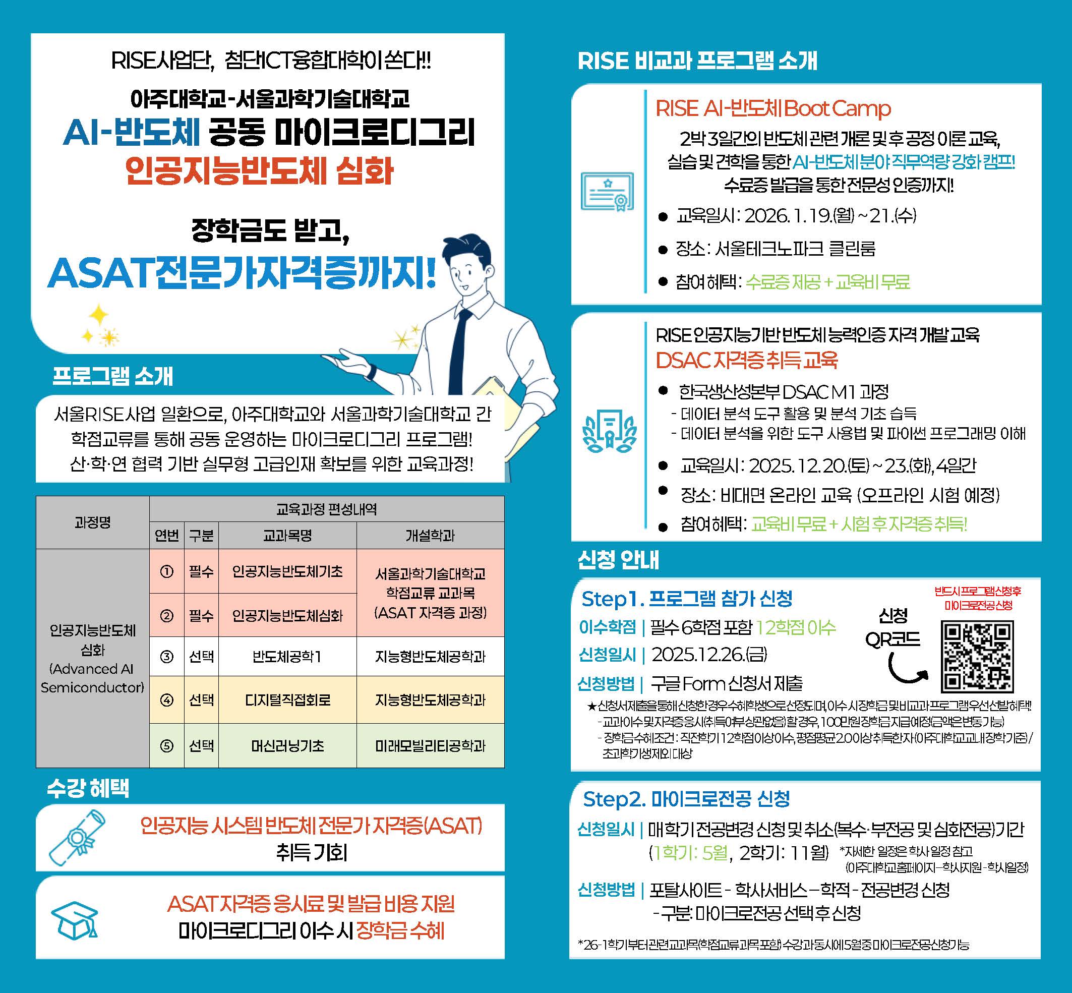 [학사] [RISE] (아주대-서울과기대) AI-반도체 공동 마이크로디그리 프로그램 신청(~1/4(일)까지, 모집연장!)