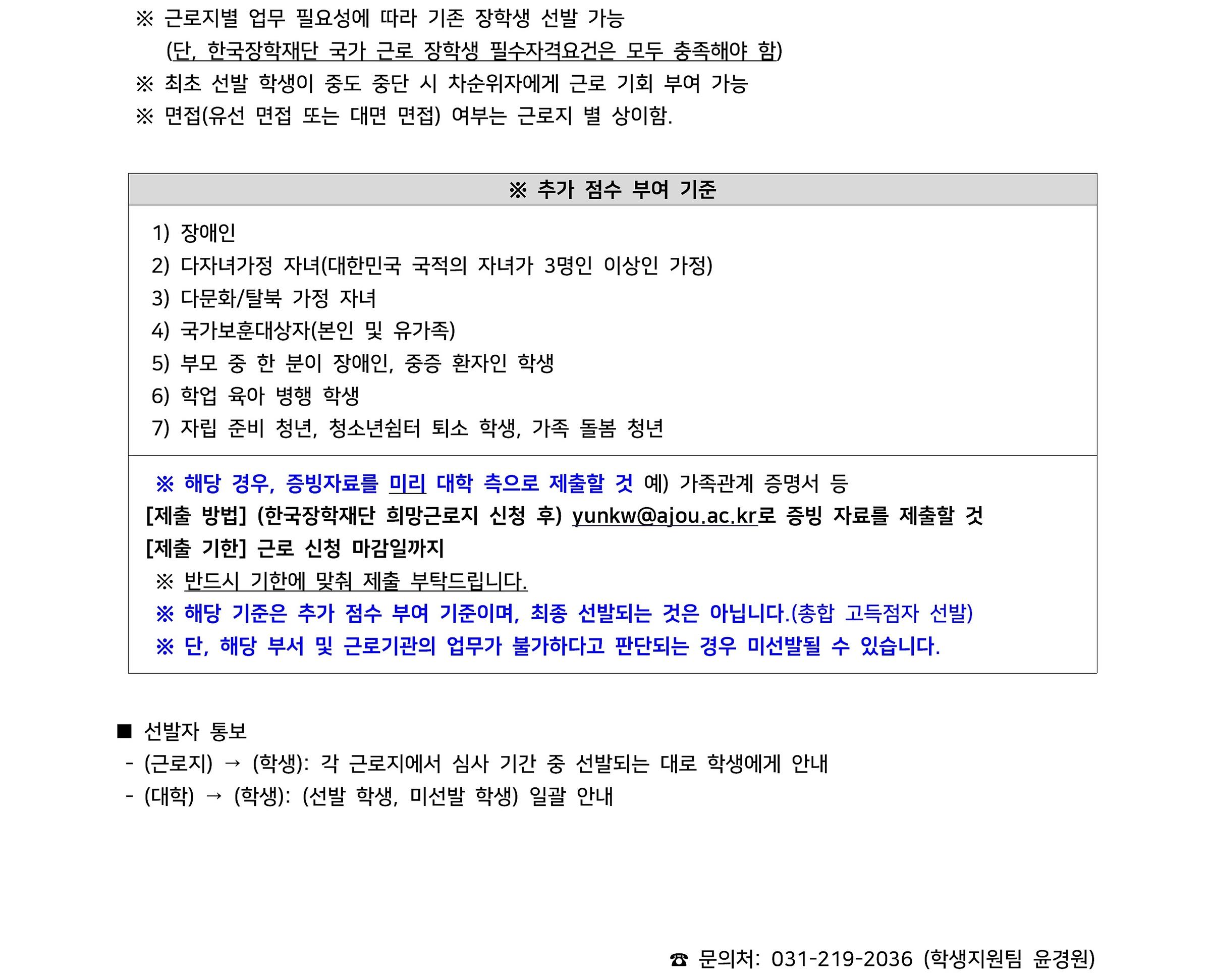 [장학] [국가근로] 2026학년도 1학기 국가근로 일반유형 추가모집 신청 안내(마지막)